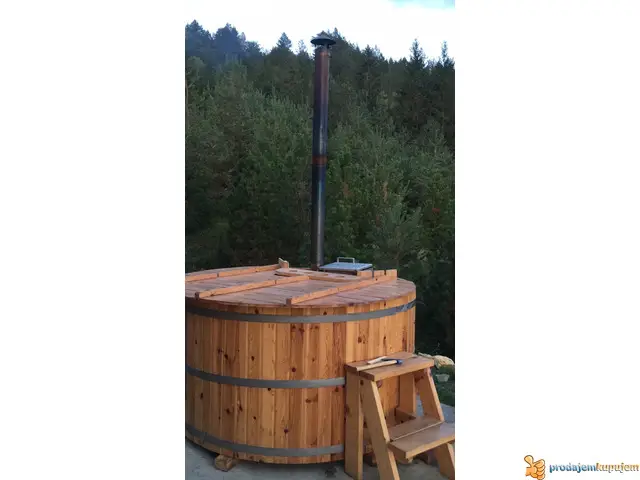 Hot tub seoska drvena kada koja moze da se smesti na otvorenom, vodu grejete na drva.